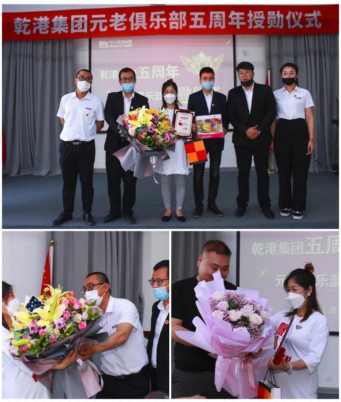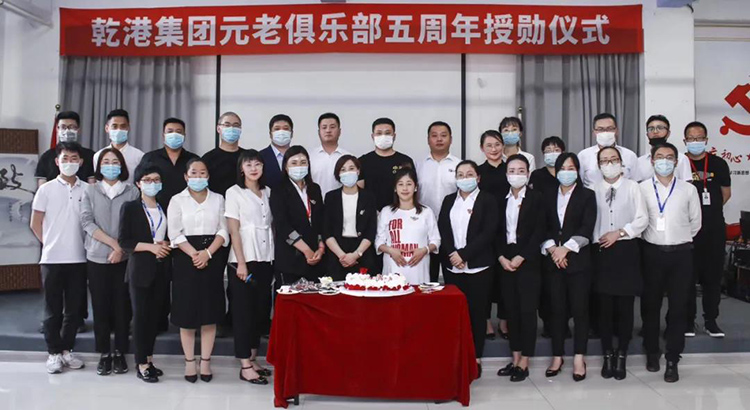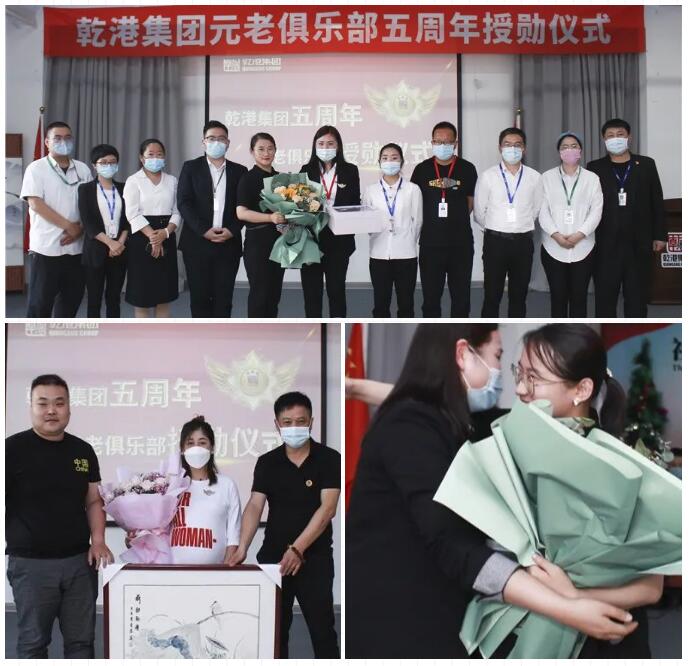 2020年5月28日,乾港集團(tuán)元老俱樂部五周年授勛儀式隆重召開,乾港集團(tuán)對3位工齡超過5年以上的老員工授予榮譽(yù)勛章,感謝元老們在乾港集團(tuán)發(fā)展中做出的貢獻(xiàn)。